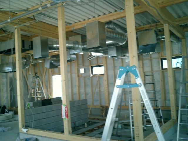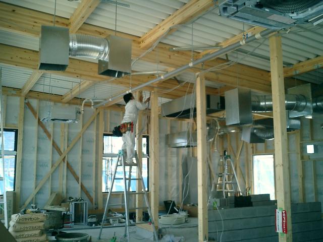 設備工事(ダクト屋さん、空調屋さん)も、同時進行で作業されてました。