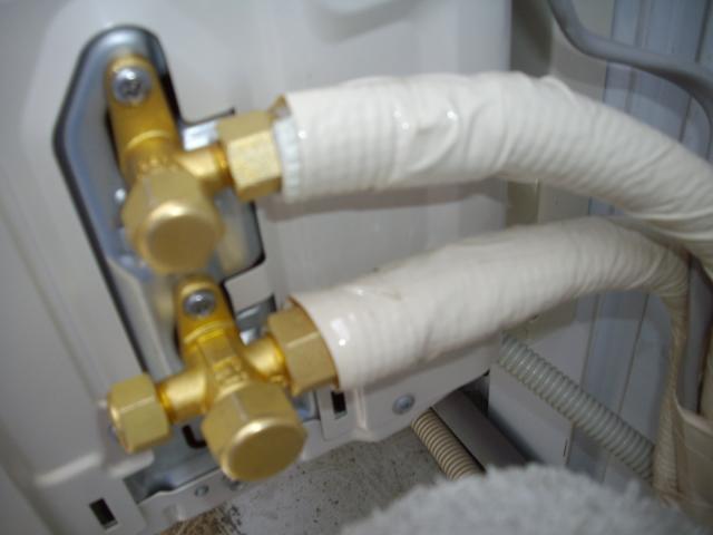室外機の配管部分は根元まで断熱しないと (これではダメです)