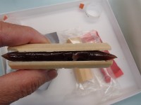 赤いパッケージの方には、餡の中にお餅が入っています。