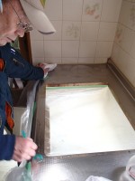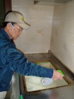 カミさんが用意してくれた「水の激落ちくん」で汚れを落とします。