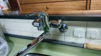 水栓を取り外して、ネジ穴の部分を清掃します。