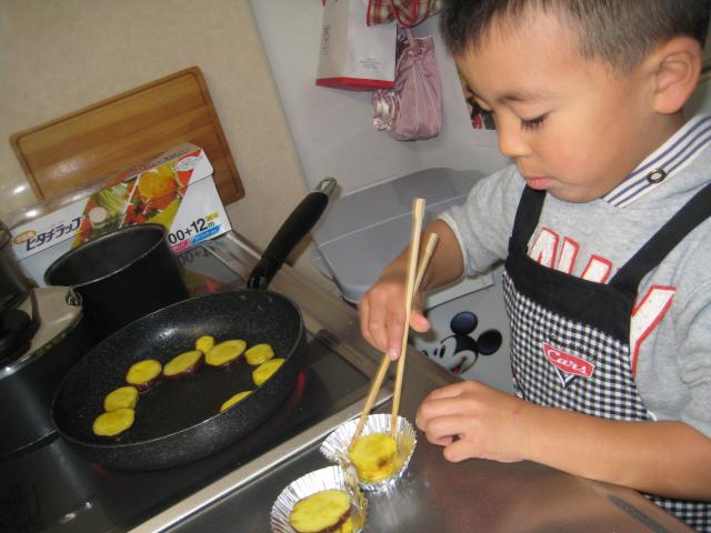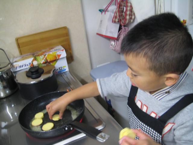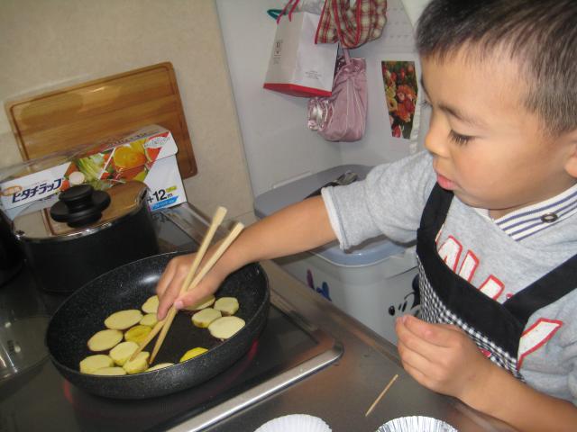 準備するもの : フライパン、さつま芋、バター、 さつま芋はスライスしておく?!