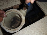 トラップを取り換えるために床を少しカットします。