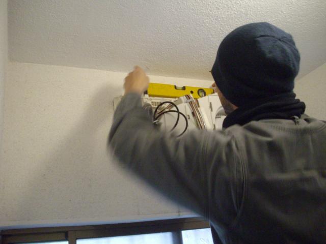 換気扇の開口を利用して、TOTO三乾王TYR260の浴室内機を取り付けます