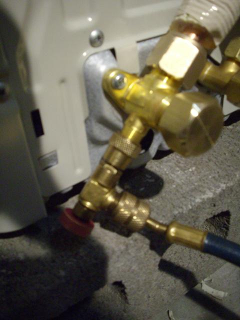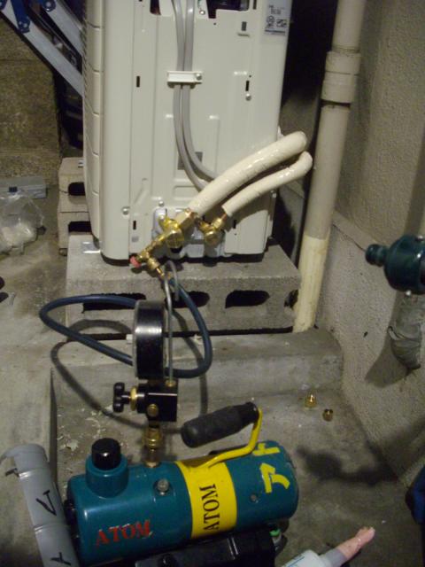 室外機の接続が終われば 真空ポンプを使ってのエアパージ