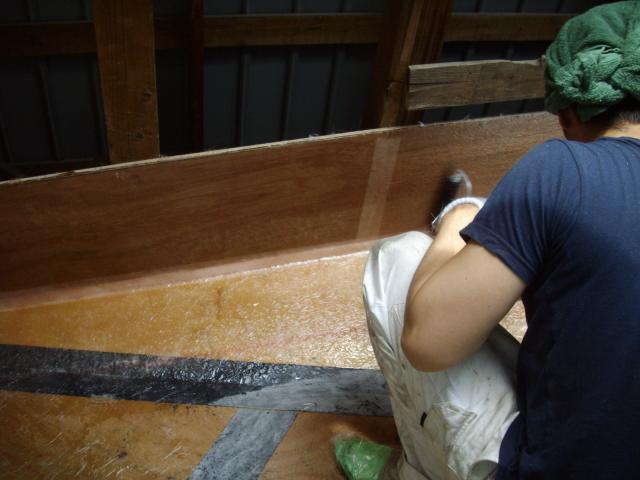 昨日に引き続きFRP塗装の仕上げの様子