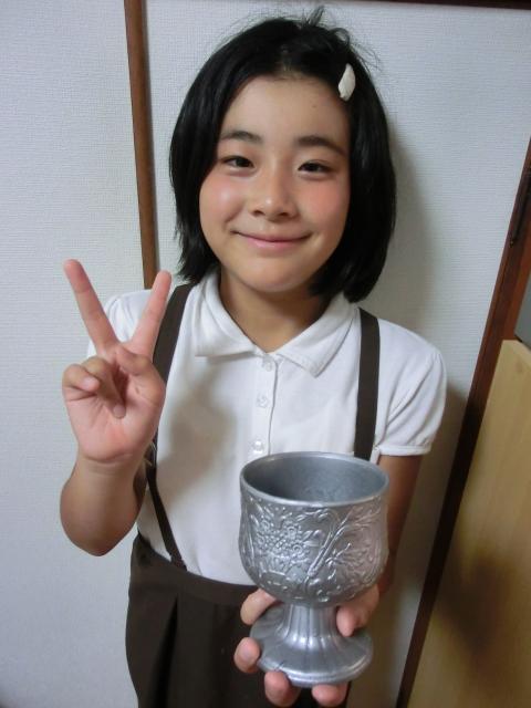 過日、行われたクラス対抗水泳大会でピノがもらった銀色のトロフィー