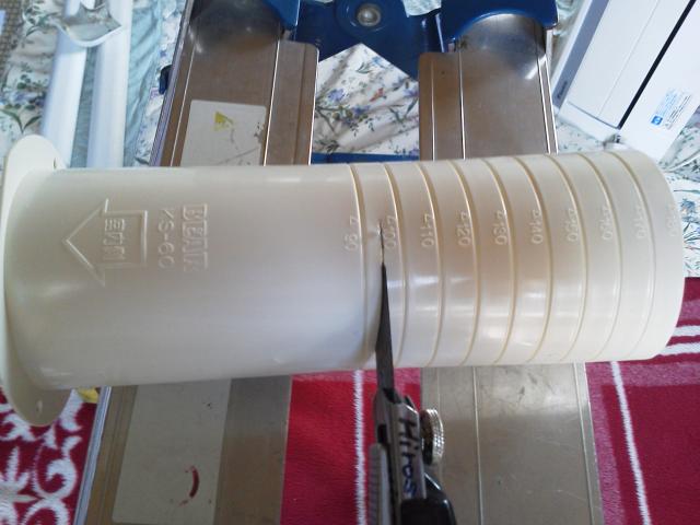 配管スリーブを壁の厚みでカットして配管穴に挿入