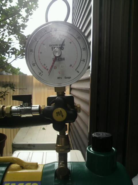 真空ポンプで真空乾燥をします(この作業は大変重要です)