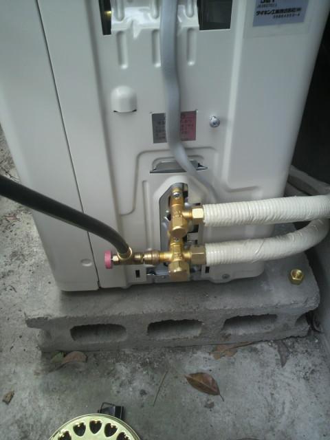 室外機の配管を接続した後、サービスポートに