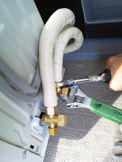 配管を接続して、配管の接続箇所は断熱をして両端をインシュロックタイで縛ります。