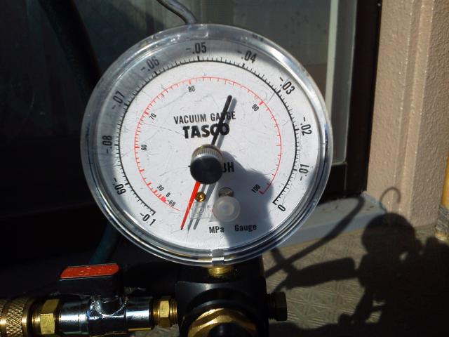 配管接続後は真空ポンプを使用して真空乾燥をします。(10分~15分)