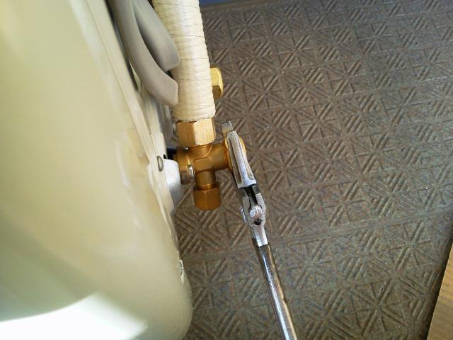 機密テストに異常がなければガスを開放します。各キャップはスパナを使って確実に締めます。