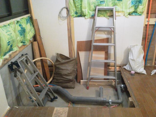 窓の位置が変わって、ユニットバスの設置スペースの準備が出来て