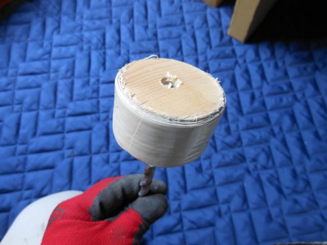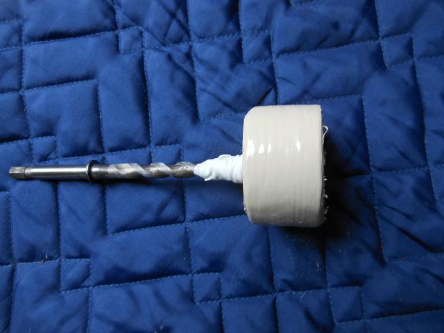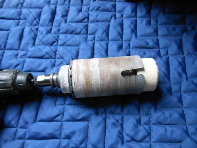 近所の新築現場で木材のきれっぱしをいただいてきて65mmのコアで切り取り!