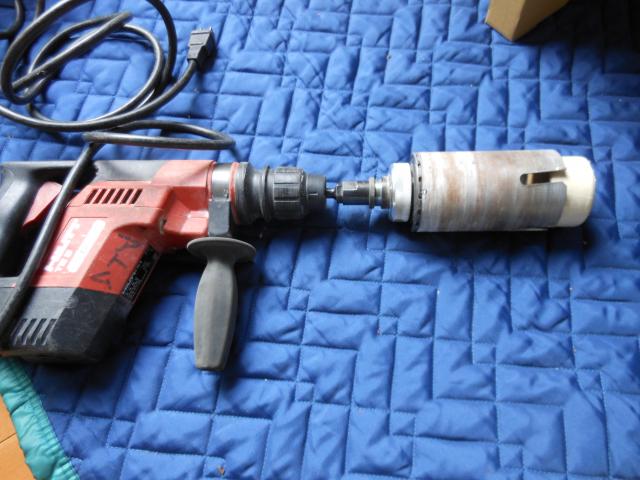 配管穴が空いていたのですが、65mmの穴だったので75mmの穴に空けなおします。