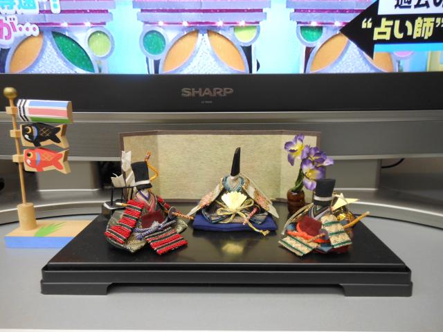はぴeマスター 2012年3月11日今年もお客様からいただいた、手作りの武者人形を飾りました。(^)o(^)