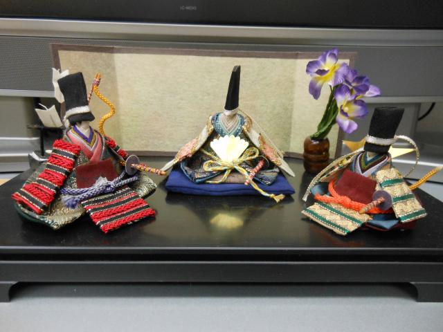 今年もお客様からいただいた、手作りの武者人形を飾りました。(^)o(^)