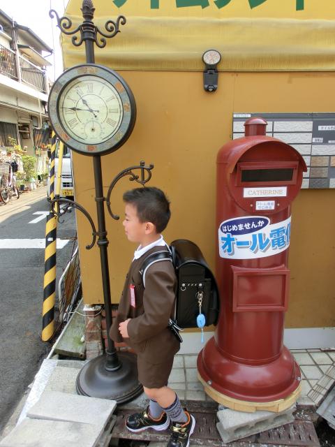 今日は、ランドセルを背負って初登校でした。