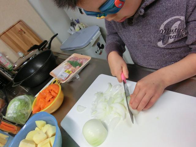 ゴーグルをして玉ねぎを切っていきます。(ガリガリ君やるやん…!)