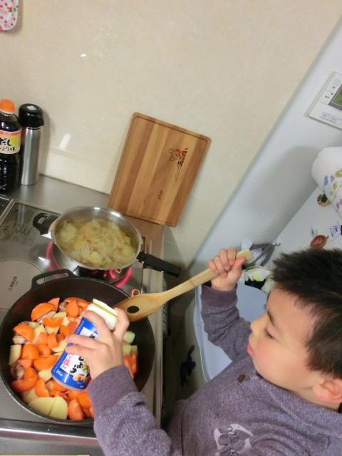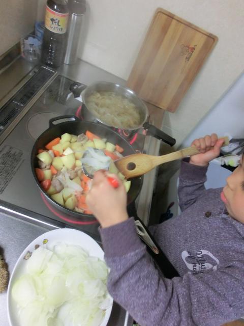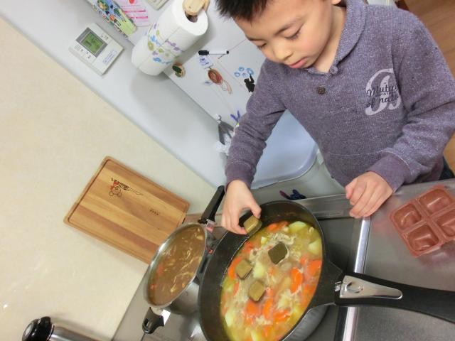 玉ねぎを入れて、最後にルーを入れて仕上げます。