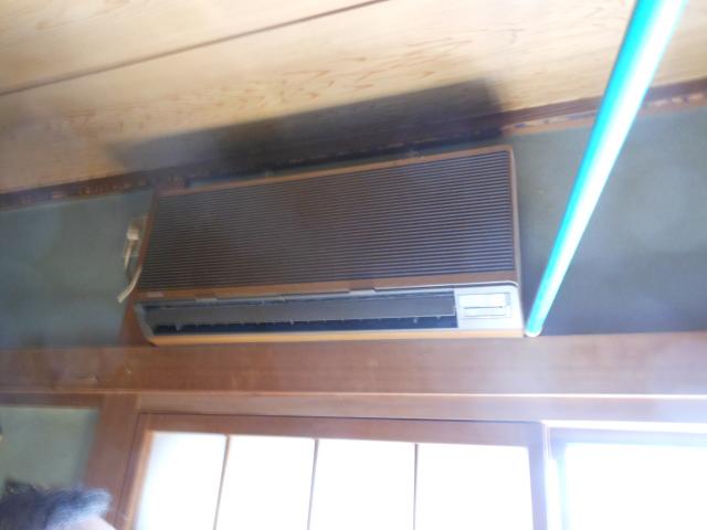 古いエアコンを取り外して取替です。室外機、かなり大胆な取付です。(笑)