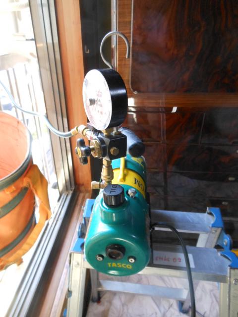 真空ポンプを使用しての真空乾燥!大事な作業なので確実に!!