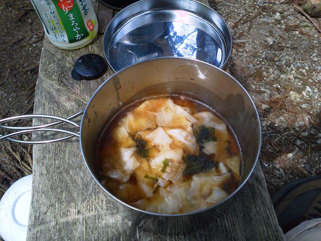 お湯を沸かしてワンタンスープの出来上がり。(^)o(^)