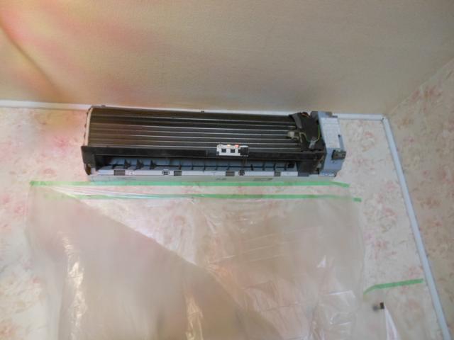 しっかり養生をして、室内機と外したパネルを洗浄します。