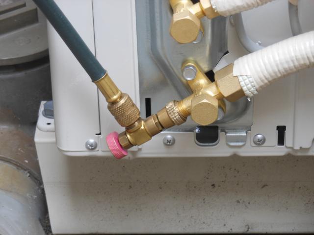 室外機の配管接続後に真空乾燥中!