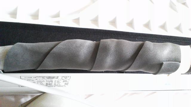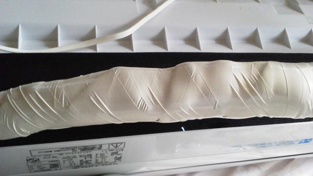 今回は左配管! 配管の接続部分には断熱を巻いてその上をさらにテープで巻きます。