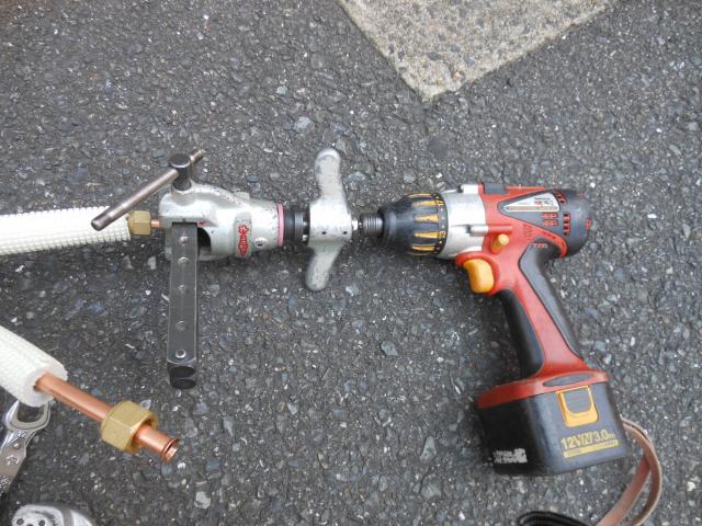 フレア加工を捨ているところです。 フレア面が美しく出来上がりました。(^L^)