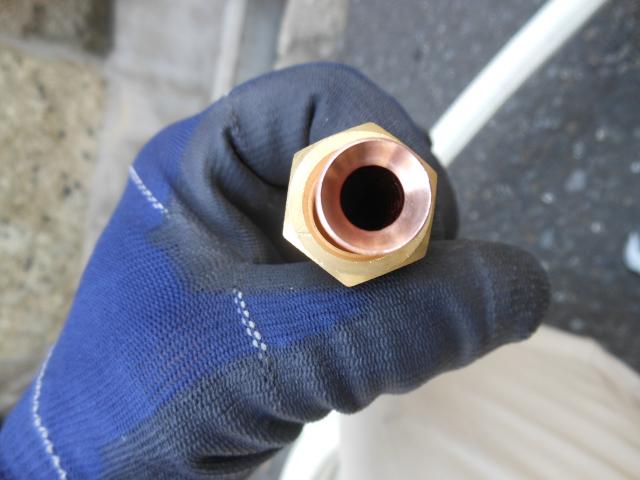 フレア配管は一時的にキャップをかぶせておきます。(ゴミなどの混入を防ぎます)