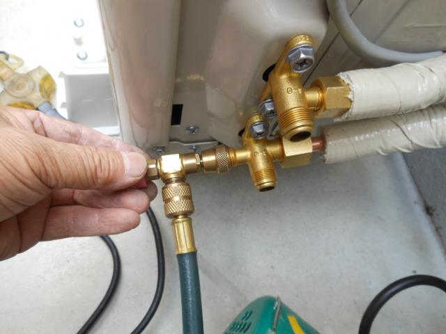真空乾燥、気密テストが終わったところでサービスバルブを閉じます。