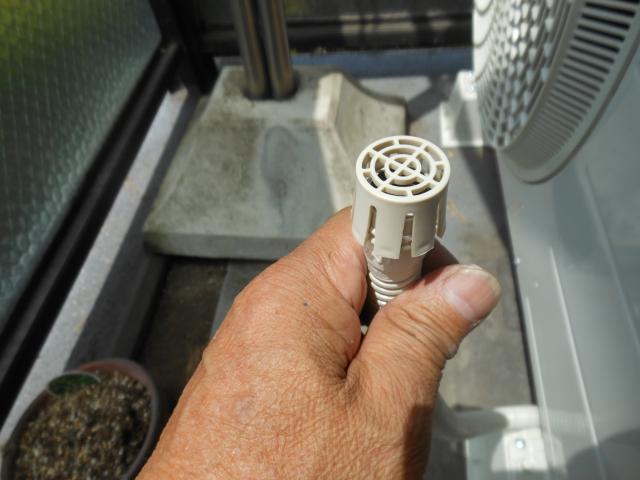 ドレンホースの先には防虫キャップを取り付けます。