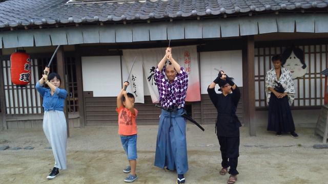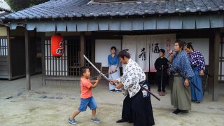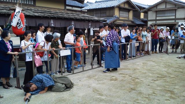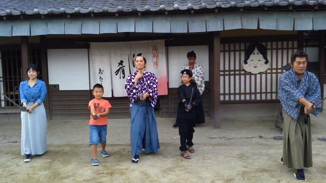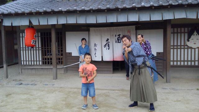 見物人の中から3名が選ばれて、殺陣の指導を受けているところ・・・!(^:^)