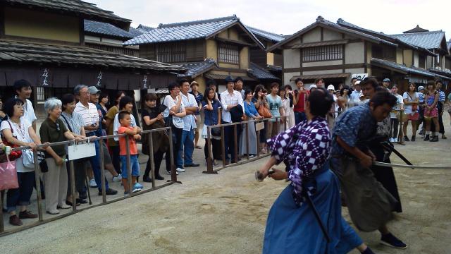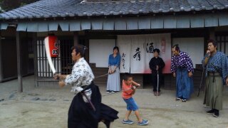 役者さんが小芝居をしながら殺陣を披露してくれています。(^L^)