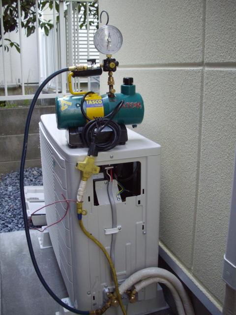 配管ダクトを利用しての 配管完了後に真空ポンプで真空乾燥