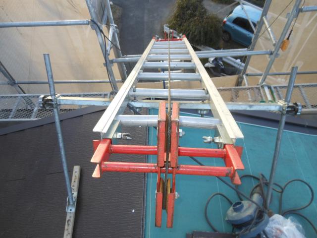 この梯子のようなもので、材料や道具を上げていました。