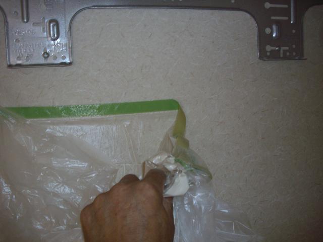 配管穴をあける際の養生シートを外し 配管穴にスリーブを挿入