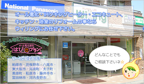 はじめまして、ウィリングです。当社は、町の電気やさんとして、親しまれて来ました。また、電気工事会社として、家や、マンション、店舗の電気工事、空調工事を多数手がけるという別の一面も持っております。