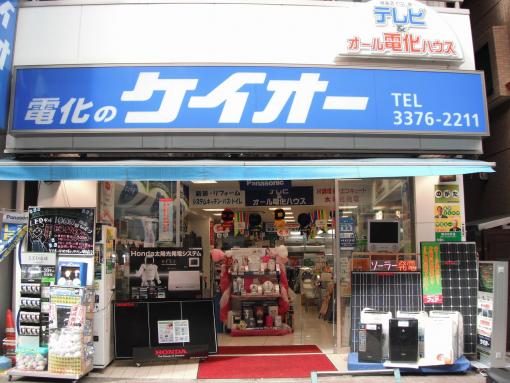 当店は、甲州街道沿いにひときわ目立つ『電化のケイオー』というブルーの看板が目印の電器店です。笹塚に2店舗を構えています。