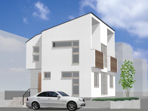 白と黒のシンプルモダンとバルコニーに木を貼ってアクセントにしたウッディーモダン -