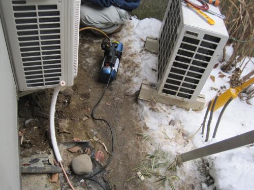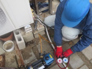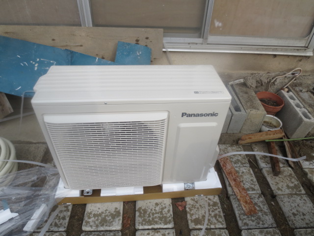 既設のエアコン室外機を取り外して