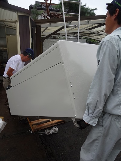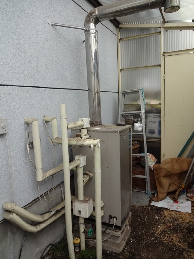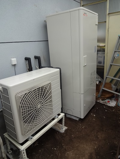2015年8月26日 エコキュート, スタッフブログ狭い場所の灯油給湯器を設置場所を変更してエコキュートを設置します。