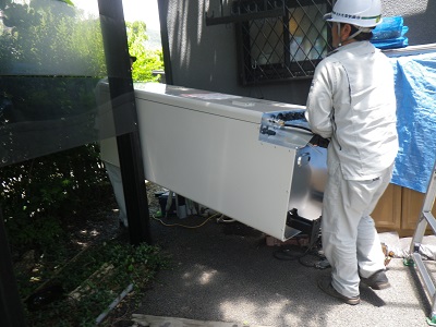 長野県長野市で灯油給湯器をエコキュートに交換します。