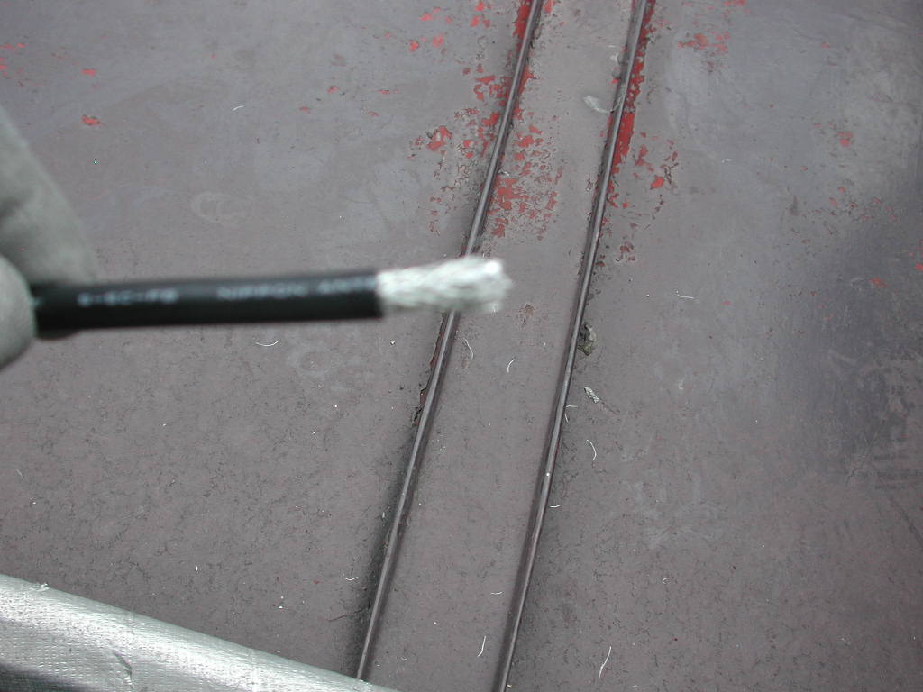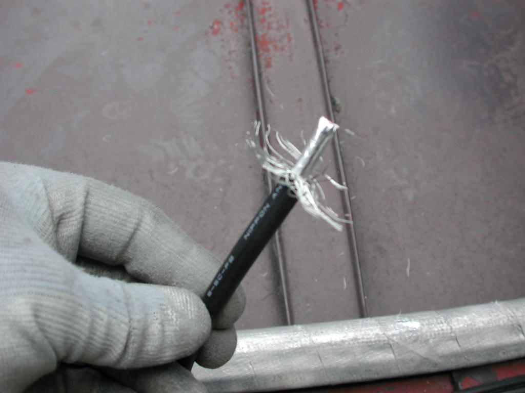 表面の被覆をカッター等で剥きますと