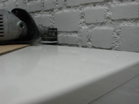転倒防止の固定用金具の穴を開けます。