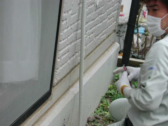キッチンが2階の為外部から配管します。