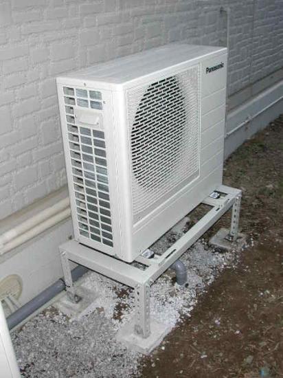 弊社では、ヒートポンプは必ず架台に乗せて施工します。